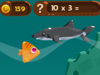 Speel tafel duiker en zwem naar de juiste bubbels en ontwijk de haai!